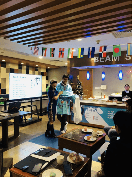 12月15日下午,上海商学院国际教育学院留学生前往鸿艺会所参加《昆曲漫谈》讲座及互动活动。本次讲座旨在向留学生们进行昆曲艺术的宣讲和普及,弘扬中华传统文化。