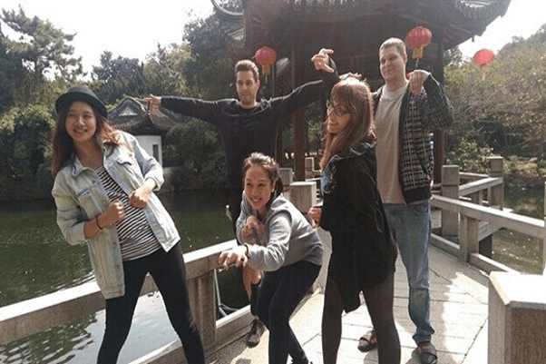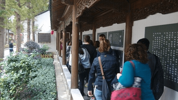 活动当天,师生们首先来到了位于嘉定的古猗园,在一片500年的中国古代传统园林建筑中进行中医功法五禽戏的习练。