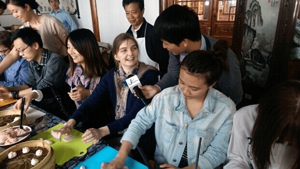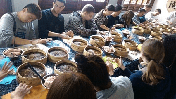 接着,同学们走访了上海南翔中医文化街。为使同学们近距离了解中国传统文化与中国人现实生活的温馨质朴与智慧灵巧,我校组织同学们在中医文化街DIY南翔传统小笼包,