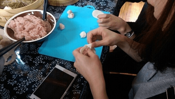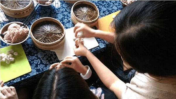 (图为同学们DIY传统小笼包)
