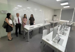 会后,在国际教育学院副院长戴莹的陪同下,马塞洛校长参观了我校茶室、咖啡室、模拟法庭、苹果机房等实训教学场所,并饶有兴趣的模仿实习,他对我校实训学习环境、先进的办学硬件表示赞赏。