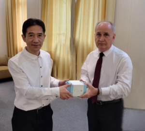 中午,吴忠校长接待了马塞洛校长,他对马塞洛校长到访表示热烈欢迎。并向来宾介绍了我校基本办学情况及中国高等教育体系。他建议加强两校交流合作,可以从交换学生,教师访学等方面开展,同时,他希望校长回国后能积极宣传中国文化,宣传上海商学院。吴忠还向马塞洛校长赠送了由我校艺术设计学院教师设计的白玉兰琉璃杯。