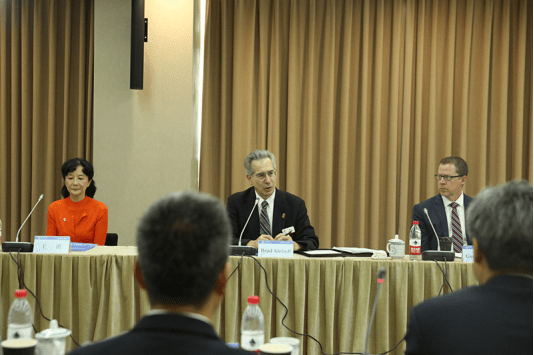 其后,专家组长Brad kleindl介绍现场评估工作流程,包括走访学校领导、学校职能部门和认证学院领导,召开认证专业教师、学生、校友、企业行业代表座谈会,召开专业课程建设、学习成果评价等委员会成员座谈会,查阅核实相关数据,审核网站和选定的课程大纲,实地查看教学设施设备、图书资料、实习实训场所等。他说,通过前期网上评阅自评报告等程序,专家组掌握了学校的基本情况,获得了学校认证工作的大量信息,进校考察将在自评报告的基础上进行确认,可以更立体更全面地印证、补充、复核学校认证信息。他希望通过上海商学院的认证工作对中国其他高校带来示范效应和借鉴意义,也为今后ACBSP认证、服务中国的商学院奠定坚实的基础。