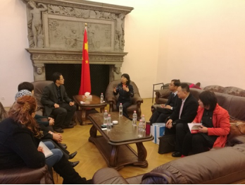 2016年11月21日布达佩斯时间下午4:30访问团一行来到中国人民共和国驻匈牙利大使馆教育组,吴华负责人接待了访问团。吴华对贺瑛副校长一行来访表示热烈欢迎,双方就在匈牙利开展合作办学、建设中国大学、与匈牙利高校开展交换生等事宜交换了意见,并期待我校与匈牙利高校之间开展实质性的高等教育合作。