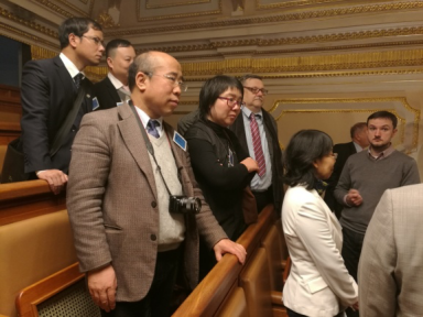 - 陆汉斌及翻译人员小陆陪同贺瑛副校长一行参观捷克议会图