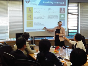 (代表团与北悉尼学院就教师考核管理工作进行交流)