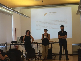 8月30日上午我校师生和其他国家参加该项目的师生一同参加了NABA项目负责人Martina老师主持的学术导向的交流会。在学术导向交流会上NABA的老师介绍了这次短期项目的具体内容和课程安排及结课方式,如考试规定、学分情况等。期间NABA的专业老师还介绍了意大利的一些历史人文,以及学生在NABA的生活和学习情况,具体到学校图书馆的开放时间以及校图书馆藏书情况和借书过程,住宿服务中心的联系方式等等。NABA本学期针对环境设计专业方向共开设了5个模块的课程,分别为:设计工作室、设计方法论、展会设计、室内设计、意大利设计史和一个英语语言强化模块。学校地处时尚之都米兰,具有全意大利最大的教学区域,为学生配备了工作室、图书馆、展览馆等优越的学习环境,内部配置了国际一线的硬件设备。并且具有强大的师资力量,所有的教师都是功成名就的艺术家和设计家,用他们在实际工作中的专业经验和知识在学院授课,激发学生的创作灵感。