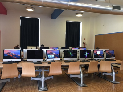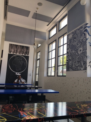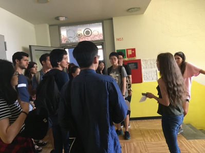 下午NABA的老师把学生分为两组,实地考察了NABA校区的各个工作室,让学生了解功能分区和各种专业服务的联系方式以及紧急求救电话。NABA的负责同学带领同学们一一参观了校园内的商店、食堂、画材店、打印室、老师办公室、图书馆等各个地方,甚至演示了如何使用贩卖机,细心周到。在熟悉校园之后,老师给同学们分发了学生卡和车票,为第二天的短途考察做准备。