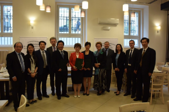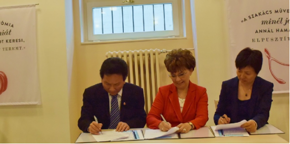 在匈牙利布达佩斯商学院,朱国宏校长一行受到了校长的热烈欢迎,与校方进行了座谈,就联合开展大学生夏令营项目达成共识,双方签署了相关合作协议。