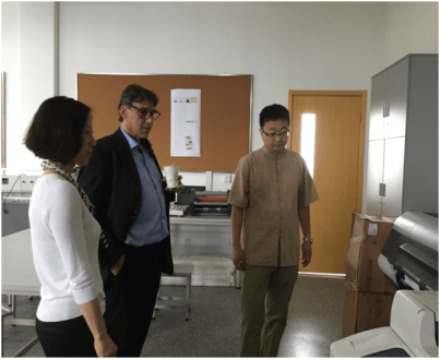 下午,该校国际项目经理Micheal先生在国际交流处的陪同下来到奉浦校区。艺术设计学院副院长赵永泉接待了客人。他向客人介绍了学院的总体情况,学院专业设置、学生培养、科学研究和国际交流等方面的基本信息,并陪同参观了学院的服装工艺、数码输出、陶艺等工作室。Micheal先生对中国特有的工艺有了基础性的印象,就两校间在艺术设计领域进行了对比,指出了相似之处和两校合作的契合点。丹麦国际商学院此次到访,将推动我校国际交流朝新的方向发展。