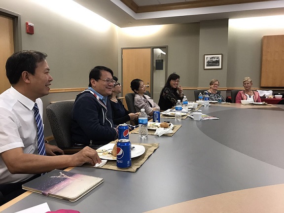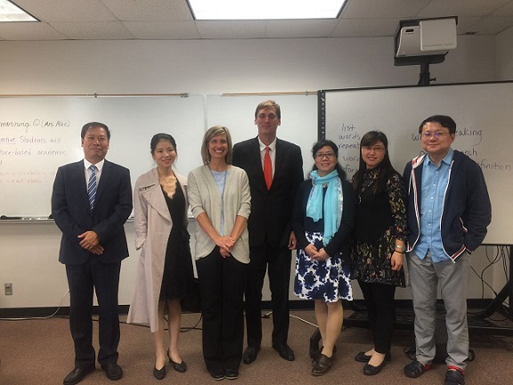 在到达学校的第二天NIU国际联盟副总裁Paul Prabhaker博士、语言培训中心主任Dieter Zeschke先生及美国方胜集团(FISO)经理Joyce张热情接待了我们。Dieter Zeschke主任首先带领我们参观了大学的语言中心,并专门安排时间详细介绍了该语言中心的情况。