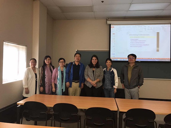 NIU语言中心授课教师授课方式轻松活泼,让我们看到了语言教学中网络资源和网络技术娴熟的运用。教师通过提供问题卡片、小测试等方式增加语言教学乐趣,同时也让我们就课堂教学中提问的艺术等问题有了更深刻的理解和思考。Maria 老师将市场营销教学与其多年的企业经历结合在一起,生动地阐释了广告营销的教学重点,结合大量案例激发学员积极思考,参与讨论。FISO张老师分享了其在美国多年居住的生活经历,勾勒出中美文化差异的特点,及其在商务英语教学中的体现。每次听课培训后,我们都和教师进行交流和分享,在较短时间里了解了美国部分大学师资力量构成,课程建设,教材选用,课堂教学,课外辅导及课程管理等多方面,汲取了宝贵经验。