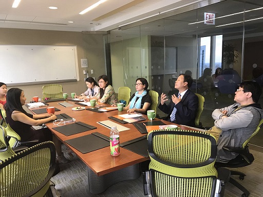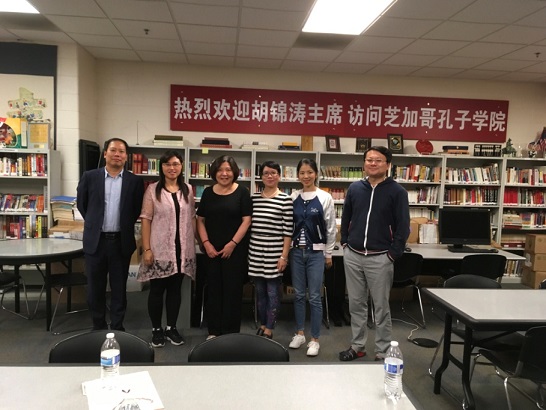 培训之余,我们还走访参观了位于芝加哥AON中心的美国方胜集团(FISO)、美国芝加哥孔子学院(CIC)及康考迪亚大学(Concordia University),参加了听课及座谈交流活动。在参加孔子学院座谈会上,听取杨校长的介绍后,老师们还就中美各阶段的教育状况展开深入交流,了解到很多美国现行教育体制中具体的细节,比如基础教育阶段,美国学生的升学情况,以及老师的生存状态,引起我们对中美教育体制对比的进一步思考。杨校长亲自带领我们参观了孔子学院的专用教室,在教室里我们看到各种具有浓厚中国特色的艺术作品,让我们倍感亲切,感受到了中国文化在异国他乡深受欢迎。在康考迪亚大学,我们走进了学生的课堂,参与了Marketing课程的旁听。听课结束后,我们来到了会议厅与该大学商学院的老师们见面讨论。国际学生部门的副主任和我们交流了该学院针对国际学生选取的教材,并对入学分级测试做了介绍。商学院院长Claudia在会上也提出了想与上海商学院建立长期校级合作关系的想法,并让我们对该校为期一年的MBA课程有了更深入的了解,双方学校互相留下了联系方式,期待进一步交流合作。