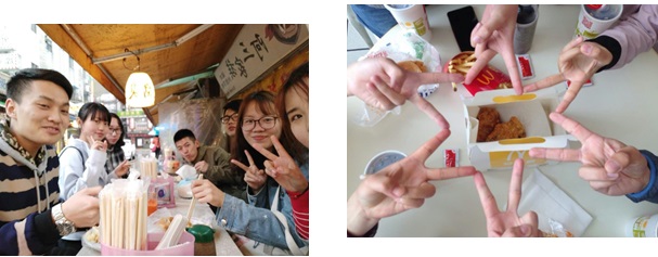 台湾的食物口味偏甜,味淡。对于来自福建的我来说口味适宜。但是对于同行的其他来自北方、每顿饭无辣不欢的同学来说,真的是尝尝鲜还不错,呆久了会想家乡的美食。交换期间,一起逛超市就拼命找“老干妈”,并且和其它交换同学一起解决了它。