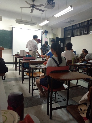 这张图片是当时企业管理学系组织的一次小吃活动。企管系的老师请我们吃当地有名的鸡腿和奶茶,并买了西瓜当甜点。那个穿着白色衬衫的就是曾老师,一个很有精神的老头。曾老师永远都是精力满满的,但是其实他马上就要退休了,却仍然这么有活力。这是台湾人给我的一个感触,不管怎么了,永远都是一种活力十足充满精力的样子。让人感觉到那种充满希望自信满满的活力,对生活充满期待的样子如何能不吸引到人呢?