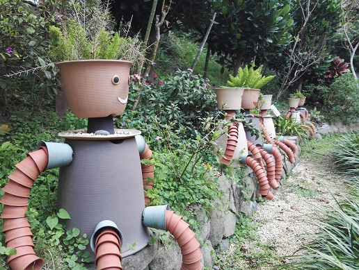首先,校园里随处可以感受到的人与自然的和谐的相处模式。第一要说到的就是校园里的水。令人意外的,校园里竟然可以随处可见潺潺流动的涓涓细流,或是吟唱在步道的两旁,或是叮咚在教学大楼旁的树隙草缝间,又或是汇聚在一起变成一个小小的蓄水池,小水塘还有小喷泉。我们学校仅有的人造池塘和喷泉相比于大叶,缺少的是一份生机和活力。陈老师在给我们介绍校园的时候,就有着重强调校园里的水的问题。我们现在所看到的校园里流动的水是由老师和同学一起参与研究的结果。将山上的水收集起来灌溉学校里的绿化以及卫生清洁,例如厕所的冲洗。