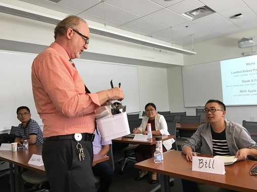 在Mao博士的讲座中,主要讲授了美国的酒店和旅游高等教育、教师的教育工作与职责、该校柯林斯酒店管理学院的发展、建设和课程体系等,作为系主任,Mao博士还与大家分享了自己从事系主任工作的心得与经验。在Singh博士的讲座中,主要讲授了旅游业发展面临的挑战、不同视角对旅游的认知、21世纪以来世界前五大旅游目的地和消费国、旅游业对美国的影响等,作为研究生项目主管,Singh博士还介绍了申请该校研究生的要求与费用。在Dewald博士的讲座中,主要讲授了国际商务礼仪、国际菜单的设计与类型、国际知名餐饮种类及品牌等,作为在法国、墨西哥、中国香港都具有工作经验的教育博士,Dewald博士还与我们分享了其丰富的行业从业经验。在Yoon博士的讲座中,主要讲授了酒店业财务管理课程中的货币的时间价值、风险与收益、股票估值、资本的成本、资本的预算和评估等,以及收益管理方面中的前期策划、战略决策、大数据分析等。在Lin博士的讲座中,主要讲授了国际化人才所包含的全球化视野、国际化意识和思维、国际化知识和胜任能力,以及美国文化的特色与个性等,作为美国华人社团联合会监事长,Lin博士还与大家分享了其多次和国家领导人会见的场景。在Kwok博士的讲座中,主要讲授了科学技术带给酒店业发展的影响、人工智能对人们生活和城市的影响,以及面对智能信息科技的冲击中学生所需具备的技能,Kwok博士还向大家介绍了Kahoot、Poll everywhere等常用课堂教学APP。