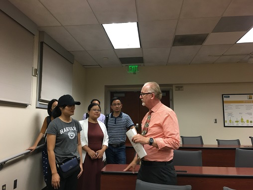 在培训开启之前的开学典礼中,加州州立理工大学波莫纳分校延展教育学院暨国际中心院长Evans博士、延展教育学院全球教育交流学院主任Lisa女士对我校教师的到来表示热烈的欢迎,并期待我校教师能学有所成,培训团团长、旅游管理系副主任席宇斌博士对Cal Poly Pomona的邀请与接待表示由衷的感谢,并表示一定会认真学习该校的先进经验。