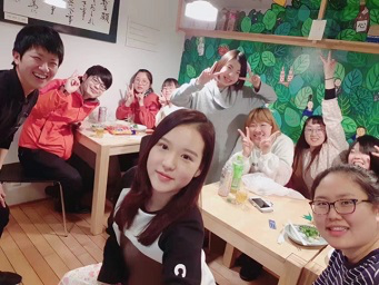这是我21年生涯里第一次出国,当从飞机上眺望这个神奇的岛屿时,感觉将地图变成了现实,内心充满新奇与激动。一下飞机就看到远处举着牌子等待我们的人,虽然大家日语并不是那么流畅,但很快攀谈起来。我们一起去吃了日式拉面,外面等位的人很多,可见这家店的火热。然后我们在古贺道场与佐贺大学的学生一起布置房间,等待韩国学生的到来。韩国学生参加这次活动的一共有29名,中日韩三国的学生都到场之后,瞬间房间变得满满当当的。最开始大家互相都不认识,中国学生、韩国学生都各自抱团,谁也没有主动过去搭话。Party开始之后,由日本学生主持大家做游戏,前几个游戏都是大家互相介绍自己,韩国学生的日语名字都是按照韩国名字音译过来的,对我们中国学生来说,记住名字的发音很难。之后的几个游戏都是分几个小组,通过小组成员的协作来共同完成任务。虽然经过整整一下午的游戏,大家都筋疲力尽了,但是结识新的朋友是件值得高兴的事情,这也印证了此次「ともだち100」的初衷。