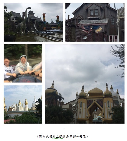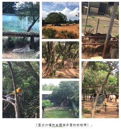 眨眼便到第九天。我们搭车前往六福村主题游乐园,开局第一玩风火轮,倒挂在正上方真的很刺激了……坐了圈旋转木马,再玩激流勇进、大峡谷急流泛舟,激起浪花时大家的尖叫,过个小水帘一起湿了衣服。看队友玩U型滑轨悬吊式云霄飞车的笑傲飞鹰,一起坐一个温和一点的西部疯狂列车。玩两次醉酒桶下来三个人晕乎乎地趴在太阳下睡觉,在她们坐完最后一个360度后,我们前往了动物世界。先往“猴子行大运”排队上双人脚踏车,在空中的一根轨道上慢慢骑行,从上方参观底下的小动物园区。看见一直埋头挖洞和挺直身子张望的小獭,一身骄傲懒懒趴卧在阴影下纳凉的大白虎,走过鹦鹉栖息的热带小丛林。最后在最后的半个小时里乘坐蒸汽火车缓缓穿过大草原,看见蓝天白云绿树下的河马、犀牛,遇见牦牛,看见孔雀,还有山羊、斑马、盘羊、长颈鹿等等。来不及乘坐猛兽巴士前往猛兽园区进行参观,可以下次留个念想。