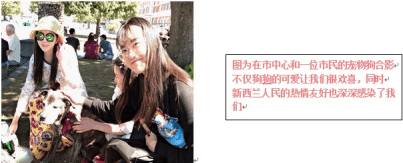| 图为在市中心和一位市民的宠物狗合影不仅狗狗的可爱让我们很欢喜,同时新西兰人民的热情友好也深深感染了我们 |