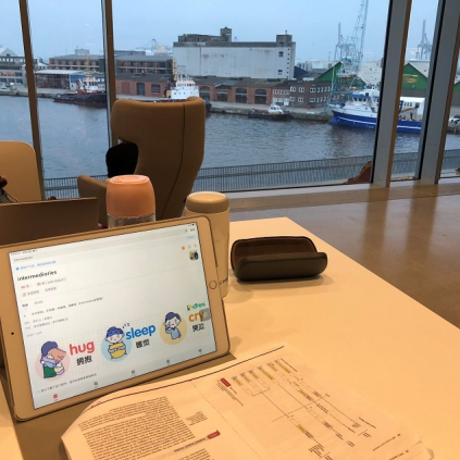 (图为在当地图书馆(DOKK1)学习)