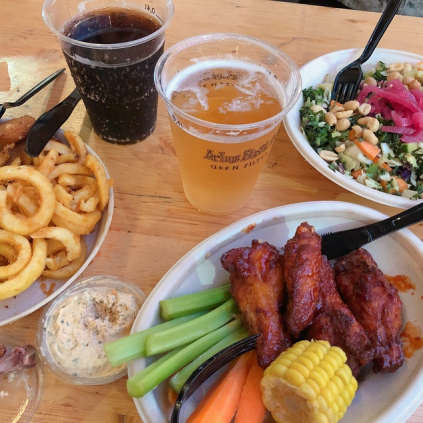 (图为当地学校组织在“street food”吃饭照片)
