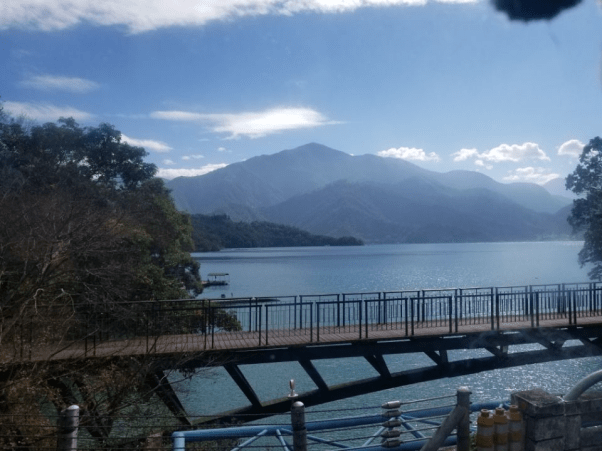 出行的第一站我们到达了日月潭。它是台湾最大的一个湖,曾经对它的印象还停留在小时候的语文课本中,长大了就连课本中对日月潭的印象也是有些模糊了。此次,确是让我真实地感受到了日月潭的“美”。日月潭,日月相映,秀显于潭,湖面辽阔,潭水澄澈,风景秀丽,这儿远离台北的喧嚣繁华,留下无尽的连绵山脉。我们乘着渡轮畅游了日月潭,望着谭中碧绿的湖。