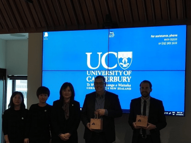 图2 翁德玮一行与坎特伯雷大学国际交流处Ian MacDonald、Will Shannon合影