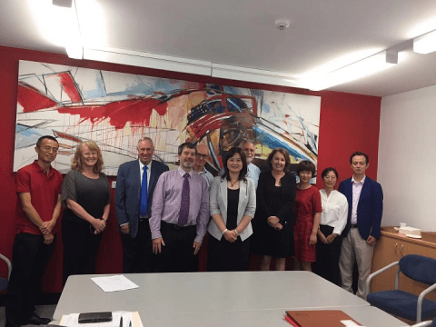 图1 翁德玮一行与坎特伯雷大学国际交流处Ian MacDonald、Will Shannon进行会谈