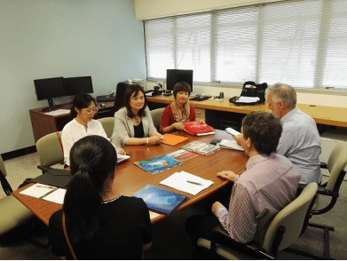 图8 与库克大学副校长、商学院院长Gary Davis、学科专业负责人Alf Kuilboer会谈
