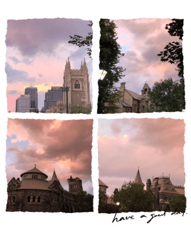 学习的地方在高级写字楼,这里每个人都穿着笔直挺立的西装,耳朵里塞着蓝牙耳机、手里握着starbucks争分夺秒似的匆匆路过,好像一不留神就会错过几百万的大单。我们跟着老师,上楼、摁电梯,11层,整个过程行云流水。上课中,老师做了简单的自我介绍,就开始了接下来的课程——R stdio,类似于国内C语言的一种高级计算机程序。由于存在一定的难度,大家上课时都聚精会神、皱紧眉头,拿出百分之百的精力去对待。八点,课后,一行人伴随着微风以及粉红色的夕阳,走在多伦多的街头。