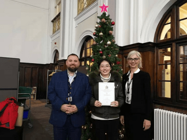 在12月12日,学校还组织了我们交流生的结课典礼,不仅现场拿到了结业证书,也和中国办的负责老师以及副校长合影留念。