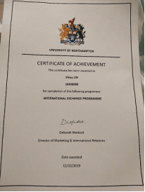 12月12日,中国办为交流生举行了一次结业典礼,邀请了北安普顿大学的副校长和Ewan教授为我们做最后的致辞,祝贺我们完成了这一次的交流项目,并颁发了证书作为纪念。