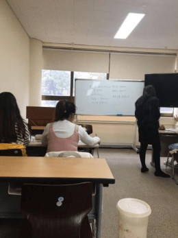 每天上午从9点到下午1点的课程,包含了韩国语精读和topik的针对练习课程,另外除了本身已有的基础课程,我还自愿报名了topik的写作课程。整个语学院分为5个等级,由于我当初第一次考试被分配在4级班,其实我有一点担心自己的实力,毕竟自己已经学了两年的韩国语,相比其他初来韩国的同学,应该相对更有优势,但当我来到4级班这个大家庭后,班主任对我们的热情和与国内不同的上课的欢快活泼的氛围使我原本的担心一点一点地消失了。在4级班里我认识了很多各个不同国家的朋友,包括越南和乌兹别克斯坦等。在那里我也遇到了目前为止关系甚好的学习伙伴和兄弟。直到后来一次,来韩国的9个朝鲜语的小伙伴一起去找了我们商学院的张教授后,我慢慢发现,其实如果光是来做题,在国内你也可以投入一样的精力去做,但是在韩国身为交换生的我们最大的优势就是韩国的语言交流的环境和氛围,作为在这个专业为数并不多的男生,对于朝鲜语的学习本本就有些困难,别说与韩国人对话交流了,这也是我来韩国之前的担忧之一,我害怕韩国人的快速交流会给我带来很多的障碍,从一开始的和老师的略显僵硬的对话,到后来和不同国家的同学逐渐大胆的交流,再到后来我参加了经济学教授举办的韩中交流会,在那次大会上,与学习中文的韩国人一起做游戏和相互的自我介绍,也因此认识到了不少很好的语伴。可以说一切都很顺其自然,渐渐地,我发现自己的听力水平和口语能力都有相应的提升,这让我更加坚定了自己原本要努力学好韩国语的决心。语言本就是一种口语的表达,对于学习语言的我们来说,大胆的与别人交流才是最有效的提高韩国语能力的方式。这也是我在韩国留学过程中感悟到的最重要最深的心得体会。