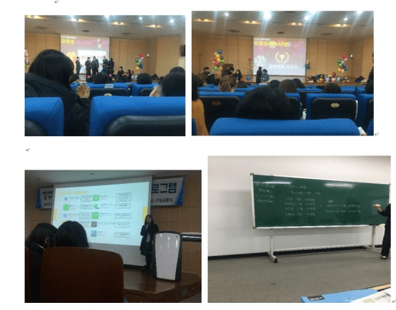 老师非常和蔼可亲,课堂气氛很融洽,没有太大的压力和负担,每堂课都很愉快。课堂上主要集中于口语和写作,课堂教学方式风趣有味,而又不失专业性。在与老师的交谈中,我们也学到了很多书本上没有的知识,对于韩国有了进一步地深刻认识,拓宽了视野,提高了自身的专业水平和能力,以及敢于开口说韩语了,而不是成为一个“哑巴韩语”。总之对我来说,极为受益。通过课堂的学习及老师的帮助,我顺利通过了韩语能力考试五级,可以说这是对我学习成果的肯定。不过我会再接再厉的,进一步提升自身水平。我两次分班都分在大多数都是中国人的班级,宿舍室友也都是中国人,可以说挺有缘分的,当时我是即高兴又激动。因为遇到了熟悉的同胞,听到了熟悉的语言,极大地缓解了我处在异国他乡的陌生环境的恐慌感和不知所措的茫然。我们一起交流留学经验,探讨学习,互相良性竞争,参与比赛。虽然参与口语竞赛失败,但在过程中收获满满,让我学到了很多。