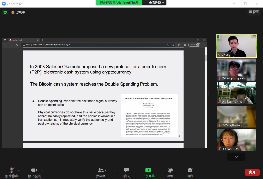 同时老师也愿意听到我们的回答,赏识学生的独创。只要学生有一点新思想、新发现,就表扬和鼓励他们,让他们看到自己的价值,注意在实践中满足学生的“成功欲”。学生答对问题时,这样,每个学生都可品尝成功的喜悦和成就感。从而情趣大振,热情倍增。在我看来这不仅是一次对区块链知识的提高,更是一次敢于说出口,提高自己的英语能力的提高。