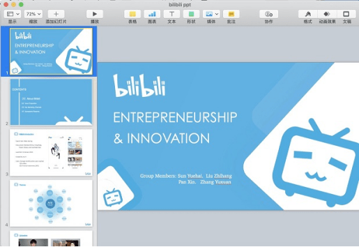 在结课汇报阶段,我很荣幸作为组长带领三位小组成员进行了成果制作与回报。基于课程属性多与互联网/软件行业相关,我经过考虑比对最终选择了中国最大势的(青年)视频分享网站bilibili,在与小组成员的共同努力合作下,我们出色的完成了汇报演示及文本!同样,很荣幸这个选题汇报时得到了讲师Adam的青睐,汇报内容得到导师们的认可!