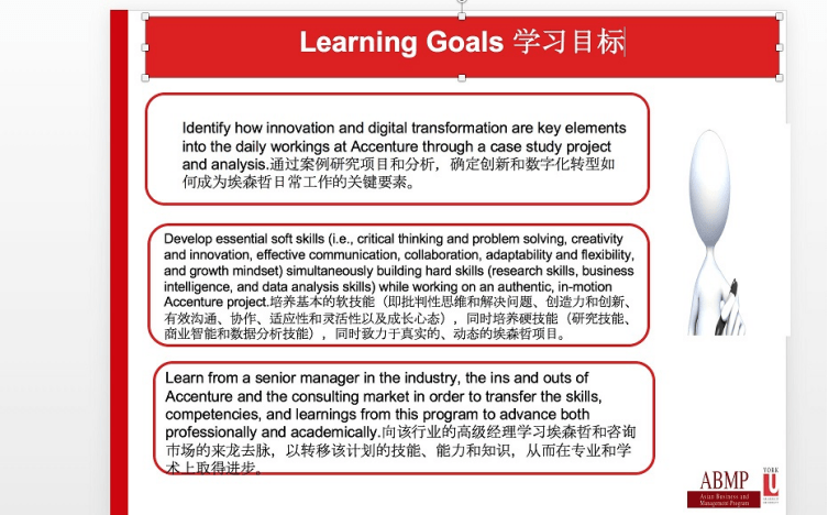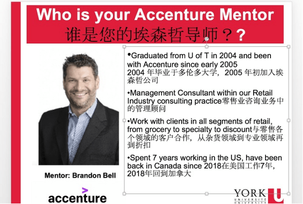 结束多大的课程后,项目进展到约克大学与埃森哲实训阶段,在该阶段中我们通过讲师Broaden分享以及小组讨论,探索了企业(尤其是零售企业)的数字化进程。讲师Broden同样有着丰富的教学与实战经验,在课程中我们的上课流程包括讲师的案例讲解与观点分享——小组成员讨论——讲师答疑——回归课堂分享总结,交互式的教学使得课程生动有趣,同学们积极思考,不吝分享,到处都是思维碰撞的火花。