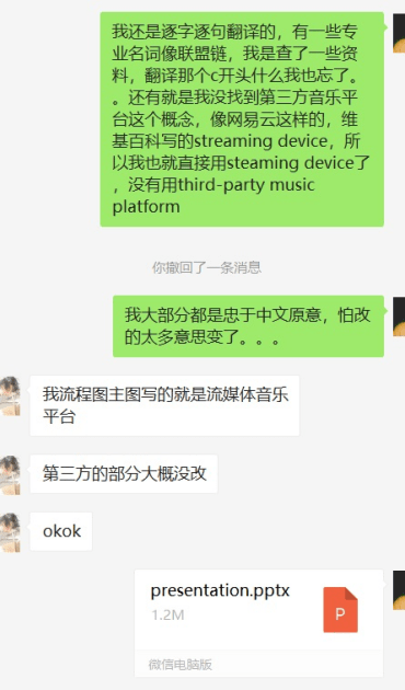 在我们小组的分工合作中,我是负责讲小组成员汇报内容翻译成英文,以及做最后的汇总汇总,值得提到的是,在这整个翻译过程中,我遇到了很多专业词汇,为保证翻译的准确性,我不得不去查阅外网的很多资料,查阅维基百科,或者已经引用过的文献里面查找相应的关键词。如下图所示,这是我的翻译部分。