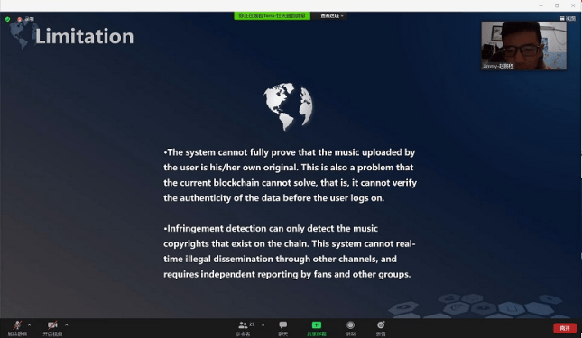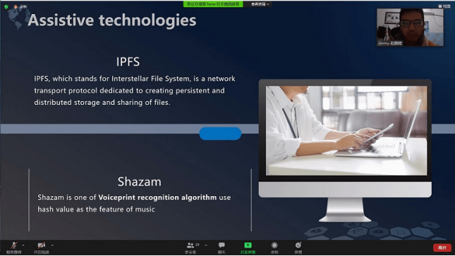 最终我们完成展示了我们小组的成果,得到了老师的好评。以下几张截图,是我在presentation的时候以及现场问答的时候的截图。
