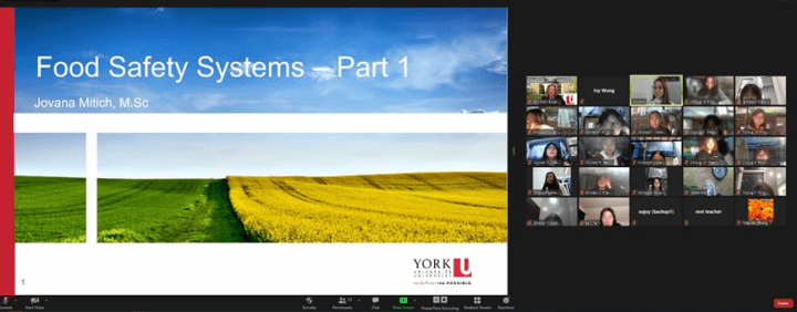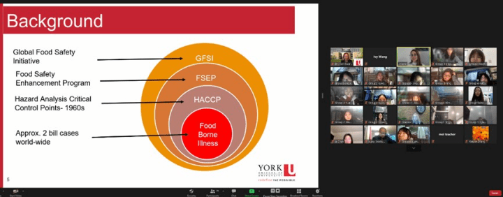 此次与加拿大约克大学的国际交流项目是在线上开展的。老师与我们都需要调整我们的时间来进行这一次项目的学习。通过在线互动讲座,在线互动学习的方式来进行关于加拿大食品安全管理的知识、政策、结构和框架,同时通过对于相关企业的参观了解,用理论联系实际的方式来对食品质量与管理专业有了更进一步的学习与认识。