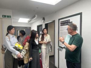 首日我们参观了金斯顿大学骑士公园校区,其滨河环境与艺术氛围令人印象深刻。校园内的服装设计工坊和学生作品展示区展现了KSA高水平的教学成果。随后的欢迎午餐和讲座“图像与创意生成项目”为我们奠定了以研究为导向的设计思维基础。