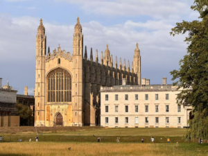 (1)作为中国大学生,踏入剑桥大学的那一刻,仿佛走进了历史与学术交织的圣地。古老的哥特式建筑、蜿蜒的康河、绿意盎然的学院草坪,无不诉说着这座学府八百年的厚重底蕴。在国王学院参观时,我被教堂内精致的扇形穹顶和彩绘玻璃震撼,不禁联想到徐志摩笔下“再别康桥”的诗意,中西文化在此刻产生了奇妙的共鸣。