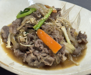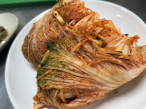 韩餐课仿佛带我闯入了热闹的市井街道。在影视剧里那些诱人的美食一一展现在我眼前,制作 Hotteok 韩式糖饼时,芝麻油在铁板上勾勒出一个闪亮的圆圈,面团按压下去,黑糖馅料咕嘟咕嘟地冒着泡。老师用竹铲轻轻一翻,糖饼翻转的瞬间,就像婴儿被包裹进温暖的襁褓。我初次尝试时,由于没有掌握好比例,糖饼过于甜腻,几乎成了焦糖饼。助教姐姐安慰我说:“焦糖味的其实更好吃!”在制作泡菜的午后,我们蹲在地上为白菜“穿上婚纱”。辣椒粉、蒜蓉、鱼露、虾酱堆成一座红色的小山丘,手指一插进去,辣味便沿着鼻腔直冲脑门。Bulgogi韩式烤肉彻底颠覆了我对“烤肉”的传统认知——牛肉与胡萝卜丝、金针菇在锅中咕嘟咕嘟地炖煮出甜美的汤汁,最后淋上一勺芝麻油,仿佛为整道菜增添了一道亮丽的高光。这道烤肉获得了大家的一致好评,刚出炉便被一扫而空。
