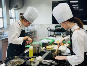 课程安排为期 10 天,内容涵盖五大模块:法餐、意大利菜、烘焙、韩餐与日料,每天上午和下午各制作两道菜,每个板块共完成8道不同菜品,课程总计完成 40余道菜品的实际操作训练,所有菜品均由学员在观看教授示范后独立完成,成品作为当日午餐和晚餐,。