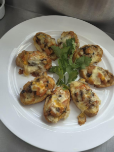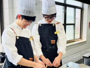 另外,我觉得自己心态也经历了一次很好的磨练,抗压能力明显增强了。厨房就像一个“小战场”,意外情况时有发生。失败和失误是家常便饭:刀工没刻好,面团没发起来,酱汁熬糊了,菜炒咸了。大大小小的问题几乎每天都会遇到。刚开始遇到这些情况,难免会沮丧、着急,甚至有点手忙脚乱。但在老师的耐心指导和队友们的互相鼓励下,我慢慢学会了如何更冷静地面对这些失败,先停下来想想问题出在哪,然后看看有没有办法补救,实在不行就及时向老师求助。管理压力也是一个重要的课题。要在有限的上课时间内完成好几道菜,本身就很有压力。再加上对操作不熟练,对厨房设备不熟悉,压力就更大了。这两周的经历让我学会了如何在紧张的环境下尽量保持专注,学着去合理规划操作的先后顺序和时间,努力控制自己的急躁情绪,把注意力放在怎么解决问题上,而不是抱怨或慌乱。当然,当经历一番波折,小组最终成功做出一道道美味的菜肴,特别是看到老师点头肯定,或者自己尝到满意的味道时,那种巨大的成就感和喜悦感,真的让人非常满足。这个过程实实在在地锻炼了我的耐心、细心、面对挫折时的承受能力,以及在压力下保持稳定工作的能力。