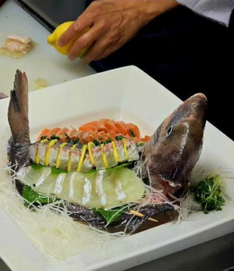 开课第一天的日式料理课,像一场涤荡心灵的仪式。老师的目光落在那条冰鲜三文鱼上时,仿佛在与食材对话。“刺身的精髓,是让吃的人尝到海洋的呼吸。”手腕轻转,刀刃贴着鱼肉的肌理游走,粉红色的鱼肉如花瓣般坠落。我们惊叹于老师精湛的刀功,也时不时被其幽默风趣所感染,逐渐融入了课堂之中。