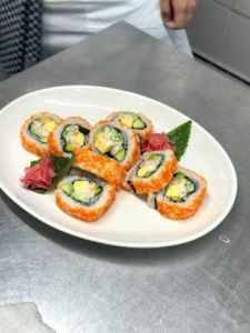 炸天妇罗盖饭则考验“油温与面糊的平衡”。天妇罗的面糊要按“水和面粉1:1”的比例调制,食材先裹干粉再裹湿面糊。油温控制在170℃最佳,判断方法是“丢一小下面糊到油中,面糊能迅速浮起并冒泡就是合适的温度”。加州卷的制作则是“耐心与技巧的结合”,从寿司饭的醋味调和到食材的摆放顺序,再到卷寿司时的力度控制,每一步都不能马虎。当我用竹帘卷出紧实的加州卷,切成均匀的小块时,看着盘中色彩搭配的寿司,突然理解了“日式料理是味觉与视觉的双重艺术”。