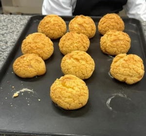 烘焙课不同于其他菜系可以灵活调整,每一步都需要精准量化。制作玛德琳时,低筋面粉的用量必须精确到克,黄油要融化成液态但不能过热,鸡蛋打发要至“提起打蛋器能留下纹路”。烤出来的玛德琳边缘微微鼓起,表面有漂亮的“小肚子”,口感松软带着黄油和柠檬香气,吃上去满满的幸福感。恰巴塔面包的制作考验“发酵的艺术”,面团需要经过两次发酵,老师教我们“用手指按压面团,不塌陷不回弹就是发酵到位”。最有趣的是制作泡芙,我们用裱花袋装面糊,在烤盘上均匀挤成一个个小山丘,烤出来后再在当中挤上奶油内陷。当咬开自己做的泡芙,奶油从内里涌出时,那种甜而不腻的口感让整个小组都欢呼起来。